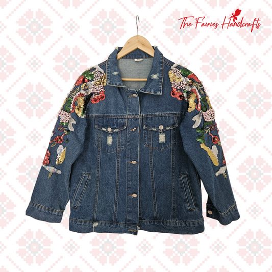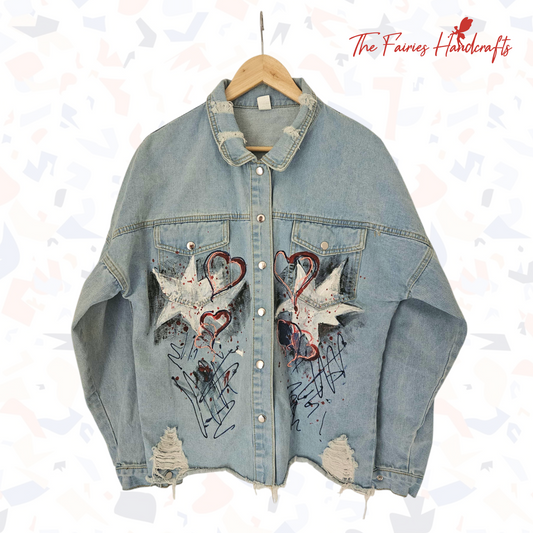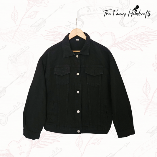 Sacred Heart – Embellished and Hand-Painted Black Denim Jacket