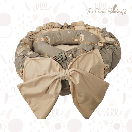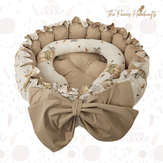 Custom-Made 100% Cotton Baby Nest Set (Cream Bunny Print/Beige)